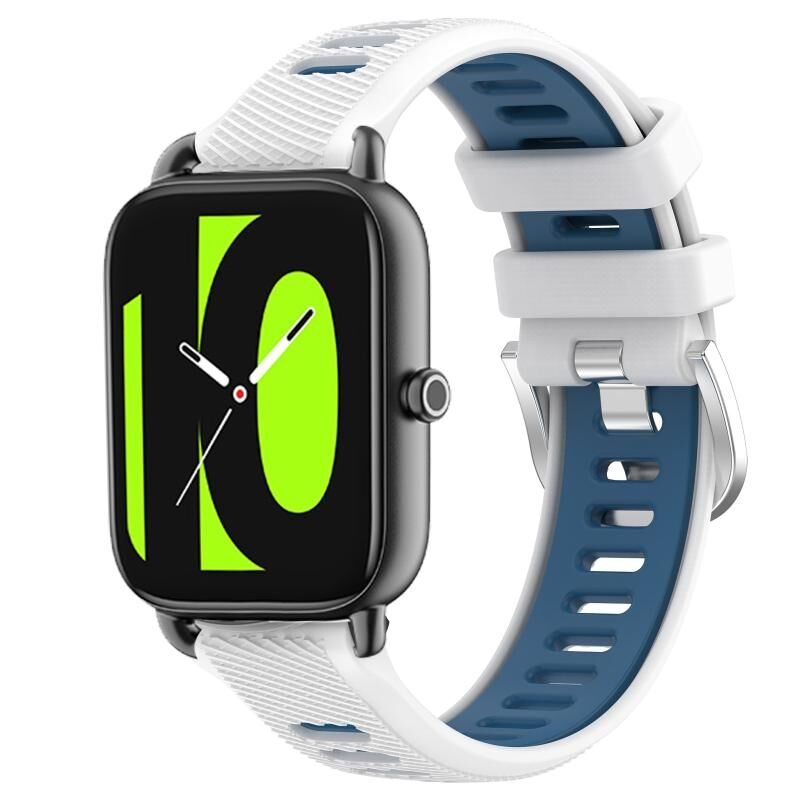 Για Xiaomi Haylou RT2 LS10 22mm Αθλητισμός δύο χρωμάτων χάλυβα πόρπη σιλικόνης ρολόι μπάντα (λευκό + μπλε)