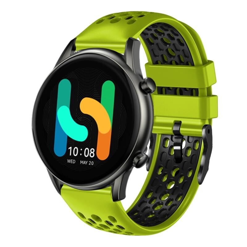For Xiaomi Haylou RT2 LS10 22mm Two-Color Breathable Silicone Watch Band(Lime+Black)