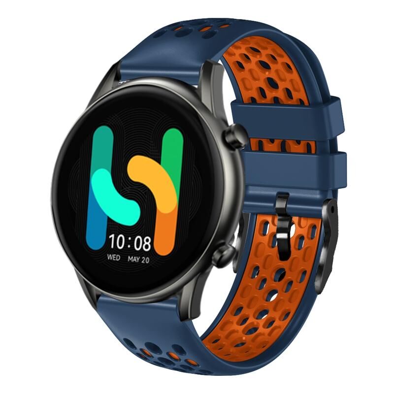For Xiaomi Haylou RT2 LS10 22mm Two-Color Breathable Silicone Watch Band(Midnight Blue+Orange)