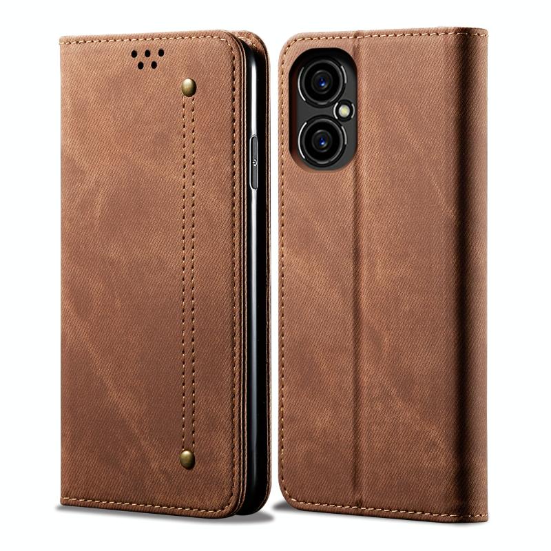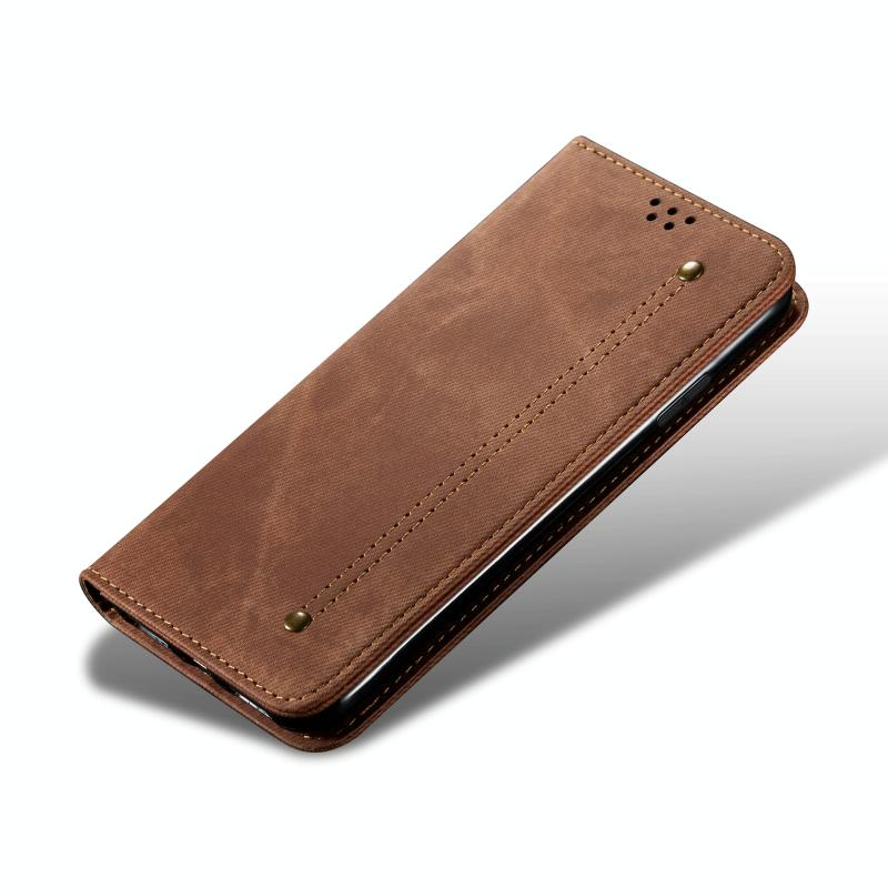 Για Xiaomi M4 5G Δερμάτινη Θήκη Flip με Υφή Denim (Καφέ)