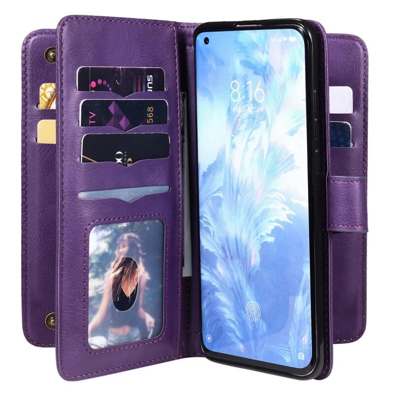 Για Xiaomi Mi 10 / 10 Pro Πολυλειτουργική μαγνητική χάλκινη πόρπη οριζόντια Flip Solid Color δερμάτινη θήκη με 10 υποδοχές για κάρτες & πορτοφόλι & θήκη & κορνίζα φωτογραφιών (μοβ)