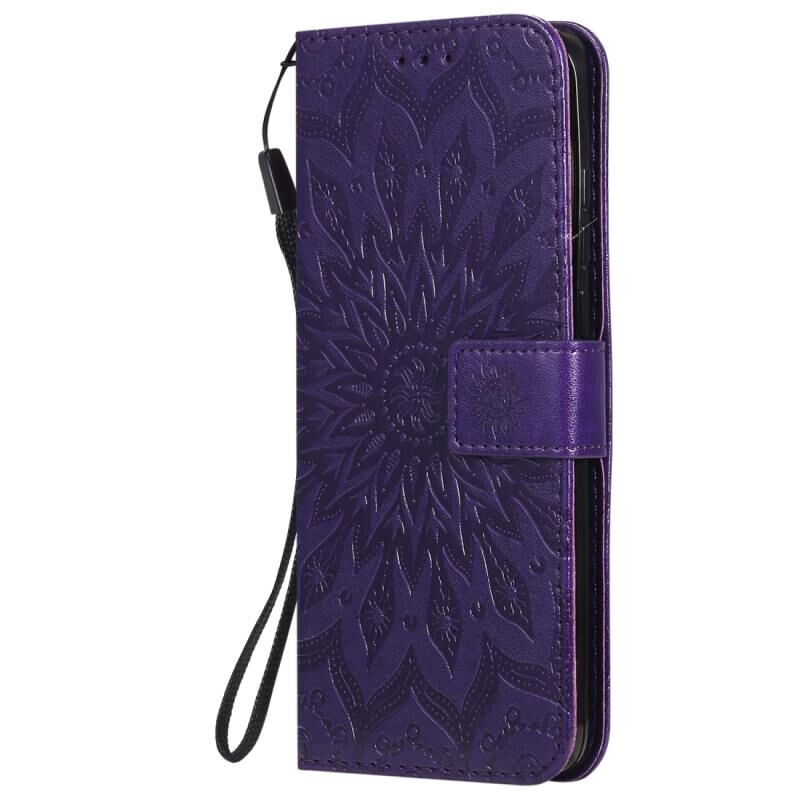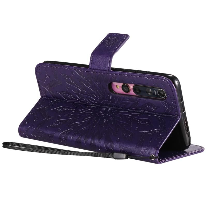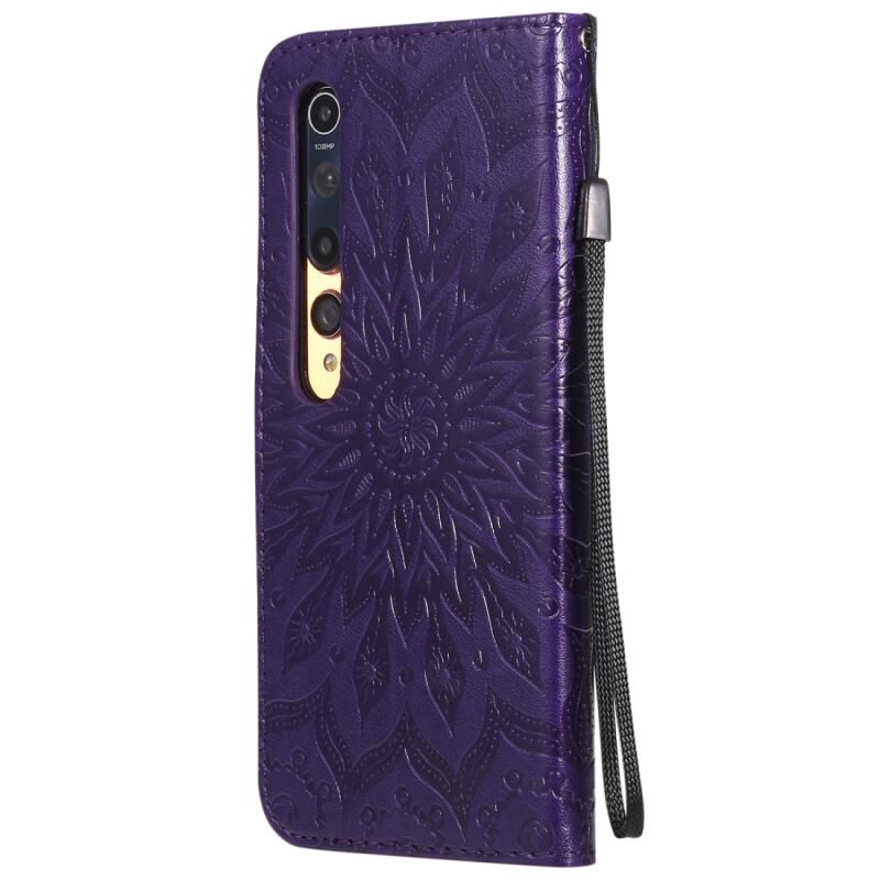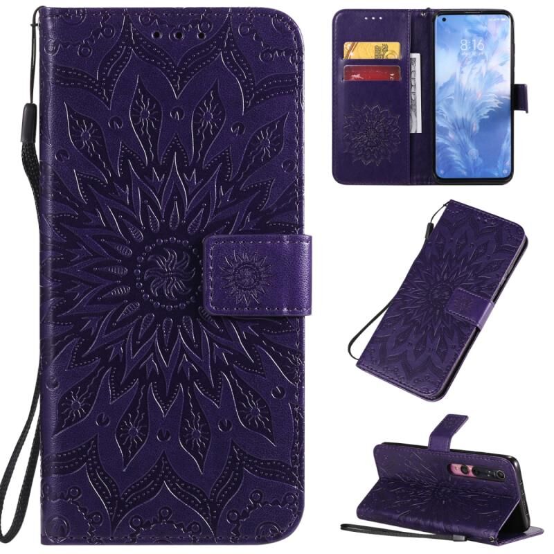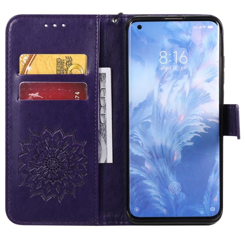 Για Xiaomi MI 10 / 10 Pro Θήκη από Δερματίνη PU με Οριζόντιο Άνοιγμα, με Εκτυπωμένο Μοτίβο Ηλιοτρόπιου, με Στήριξη, Θήκες Καρτών, Πορτοφόλι & Λουρί (Μωβ)