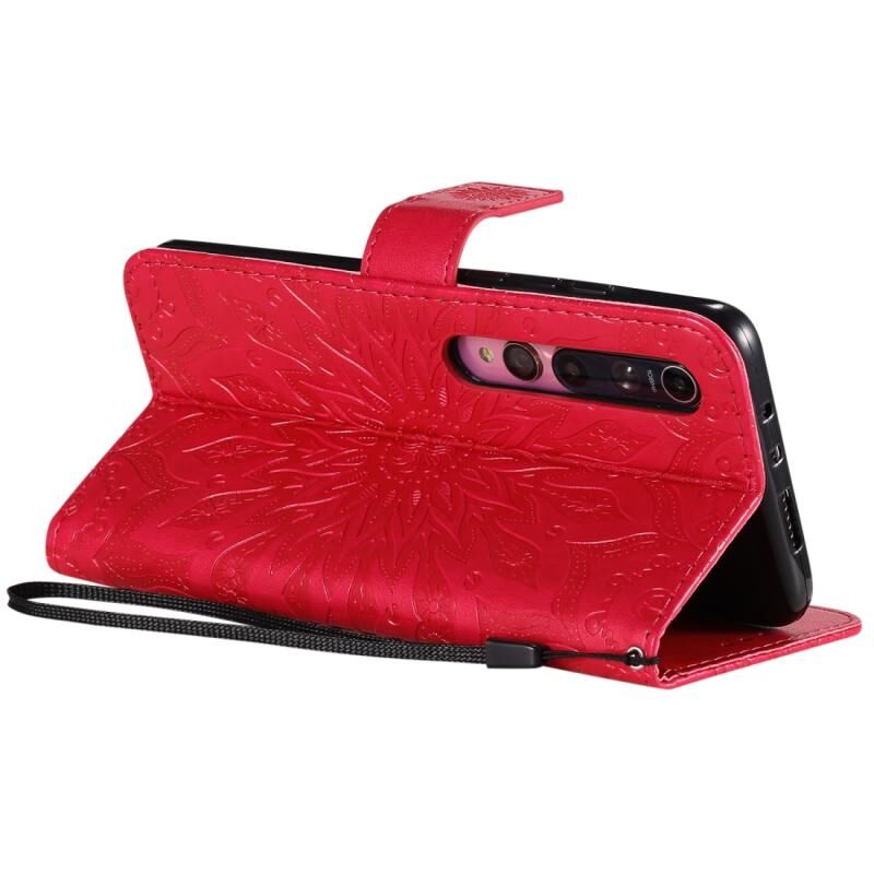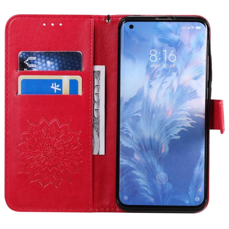 Για Xiaomi MI 10 / 10 Pro Θήκη από Δέρμα PU με Οριζόντιο Άνοιγμα, με Εκτυπωμένο Μοτίβο Ηλιοτρόπιου, με Στήριξη, Θήκες Καρτών, Πορτοφόλι & Λουρί (Κόκκινο)