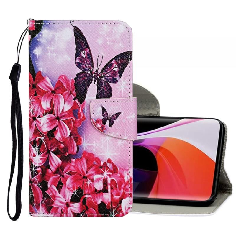 Για Xiaomi Mi 10 5G Θήκη Δέρματος Οριζόντιας Αναδίπλωσης με Πολύχρωμο Σχέδιο, Στήριξη, Θήκες Καρτών & Πορτοφόλι (Κόκκινο Λουλούδι Πεταλούδα)