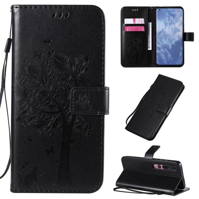 Για Xiaomi Mi 10 5G / Mi 10 Pro 5G Θήκη από Δερματίνη PU με Οριζόντιο Άνοιγμα, με σχέδιο Δέντρου & Γάτας, με εκτύπωση υπό πίεση, με βάση στήριξης & Θήκες Καρτών & Πορτοφόλι & Λουρί (Μπλε)