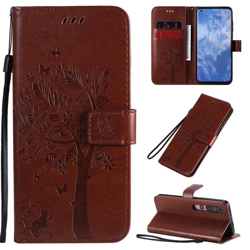 Για Xiaomi Mi 10 5G / Mi 10 Pro 5G Θήκη από Δερματίνη PU με Οριζόντιο Άνοιγμα, με σχέδιο Δέντρου & Γάτας, με εκτύπωση υπό πίεση, με βάση στήριξης & Θήκες Καρτών & Πορτοφόλι & Λουρί (Μπλε)