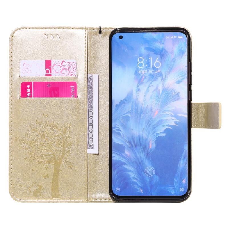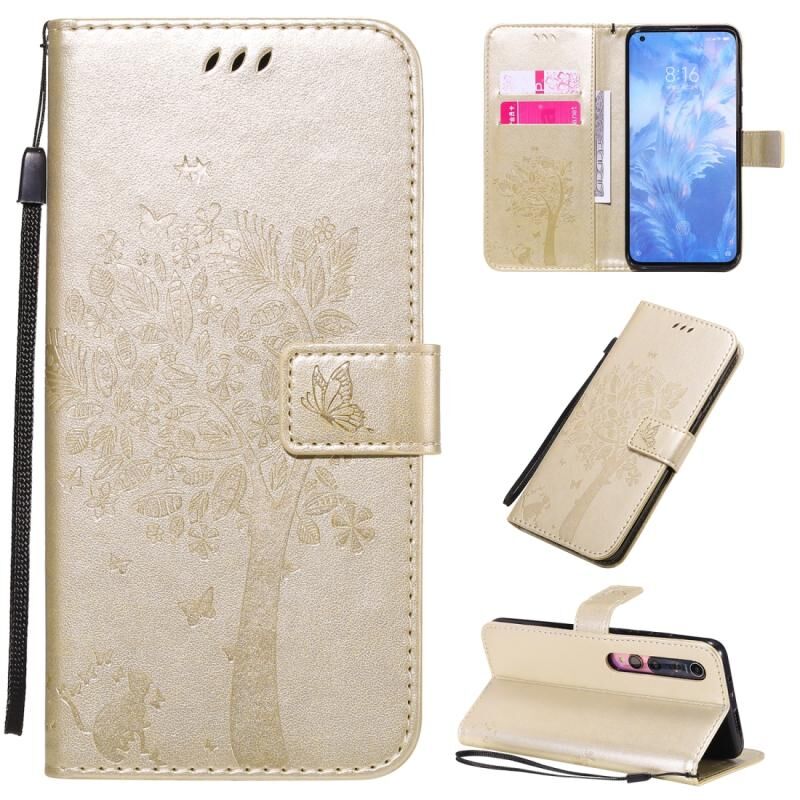 Για Xiaomi Mi 10 5G / Mi 10 Pro 5G Θήκη από Δερματίνη PU με Οριζόντιο Άνοιγμα, με σχέδιο Δέντρου & Γάτας, με Εκτύπωση υπό Πίεση, με Θήκη, Θήκες Καρτών, Πορτοφόλι & Λουρί (Πράσινο)
