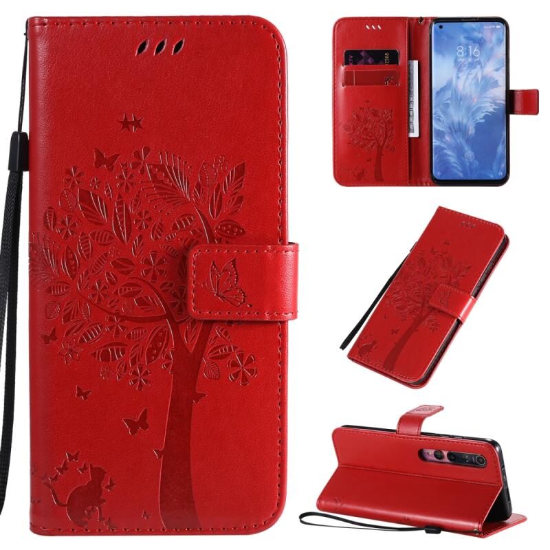 Για Xiaomi Mi 10 5G / Mi 10 Pro 5G Θήκη από Δερματίνη PU με Οριζόντιο Άνοιγμα, με σχέδιο Δέντρου & Γάτας, με εκτύπωση υπό πίεση, με βάση στήριξης & Θήκες Καρτών & Πορτοφόλι & Λουρί (Μπλε)
