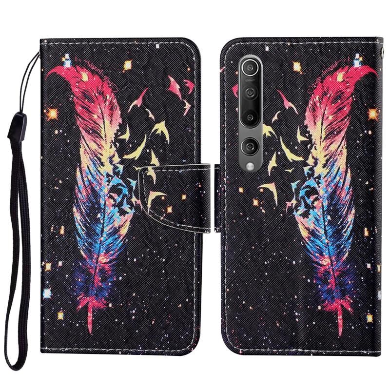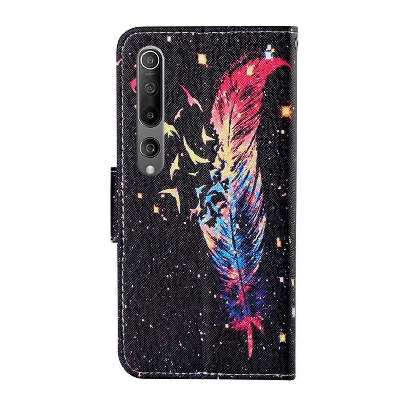 Θήκη δέρματος οριζόντιας αναδίπλωσης με σχέδια και χρώματα για Xiaomi Mi 10 με βάση στήριξης, θήκες καρτών, πορτοφόλι και κορδόνι (Κόκκινο)