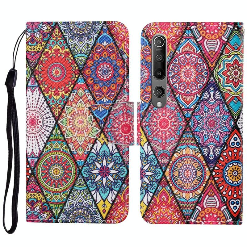 Θήκη δέρματος οριζόντιας αναδίπλωσης με σχέδιο πολύχρωμης ζωγραφικής για Xiaomi Mi 10 με βάση στήριξης & υποδοχές καρτών & πορτοφόλι & κορδόνι (Κόκκινο)