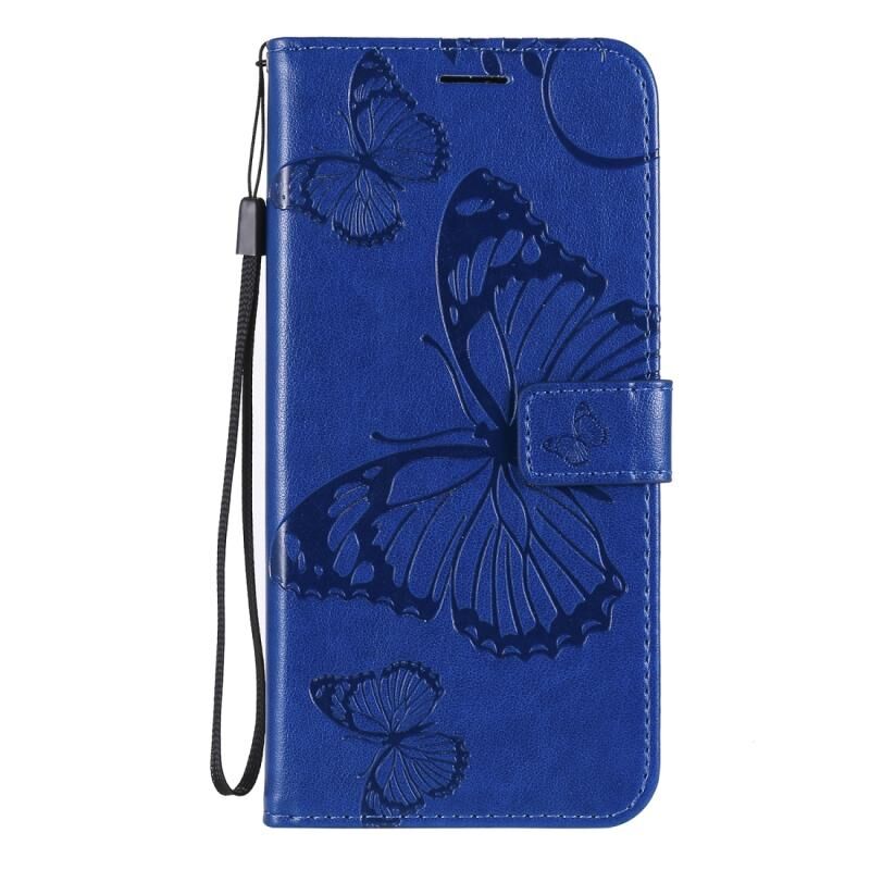 Για Xiaomi Mi 10 Lite 5G 3D Πεταλούδες Embossing Μοτίβο Οριζόντια Θήκη Δέρματος με Στήριξη & Θήκη Κάρτας & Πορτοφόλι & Λουρί (Μπλε)