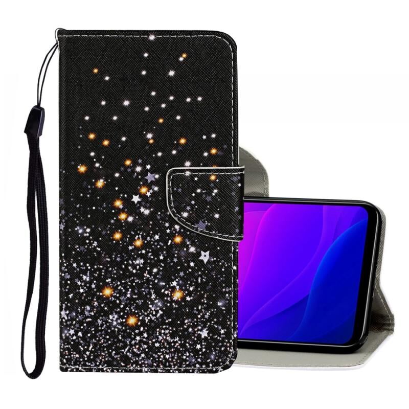 Θήκη δέρματος οριζόντιας αναδίπλωσης με σχέδιο ζωγραφικής και χρώματα για Xiaomi Mi 10 Lite 5G, με βάση στήριξης & υποδοχές καρτών & πορτοφόλι (Μαύρο Αστέρι)