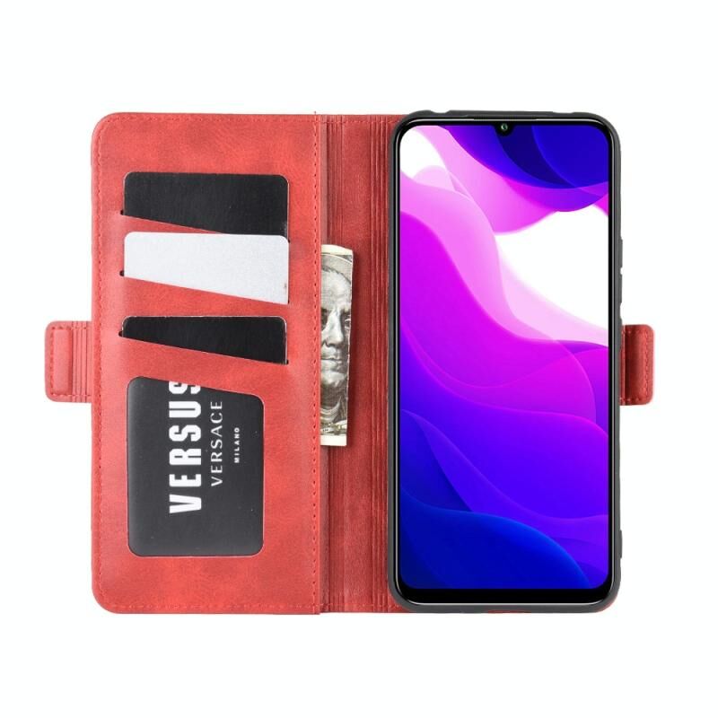 Για XiaoMi Mi 10 Lite 5G Διπλής όψης μαγνητική πόρπη οριζόντια Flip δερμάτινη θήκη με θήκη & υποδοχές καρτών & πορτοφόλι (κόκκινο)