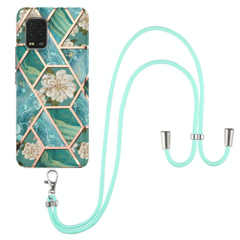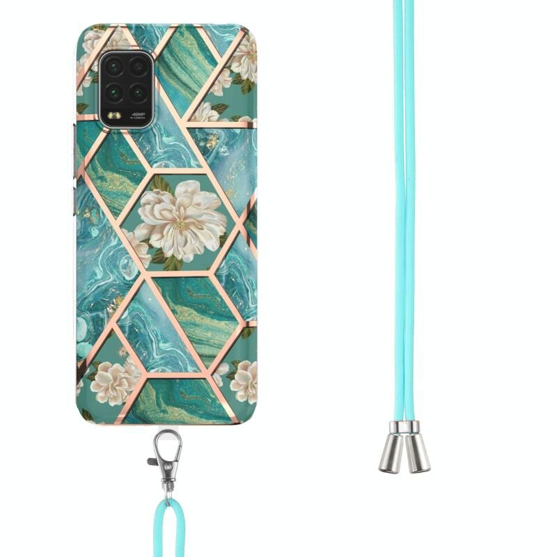 Θήκη προστασίας TPU με ενσωματωμένο κορδόνι για Xiaomi Mi 10 Lite 5G, με γαλβανισμό, συνδυασμό χρωμάτων και σχέδιο μαρμάρου με λουλούδια (Ροζ Λουλούδι).