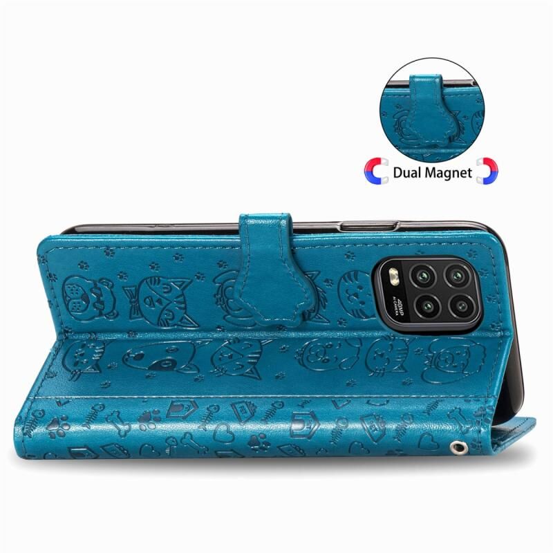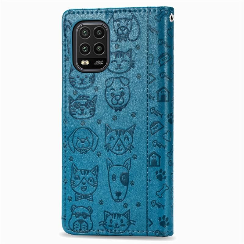 Για Xiaomi Mi 10 Lite 5G Όμορφη Θήκη Δέρματος Οριζόντιας Αναδίπλωσης με ανάγλυφο σχέδιο Γάτας και Σκύλου, με Στήριξη & Θήκες Καρτών & Πορτοφόλι & Κούμπωμα Καρτούν & Λουρί (Μπλε)