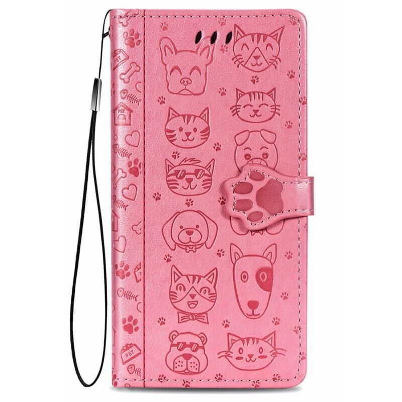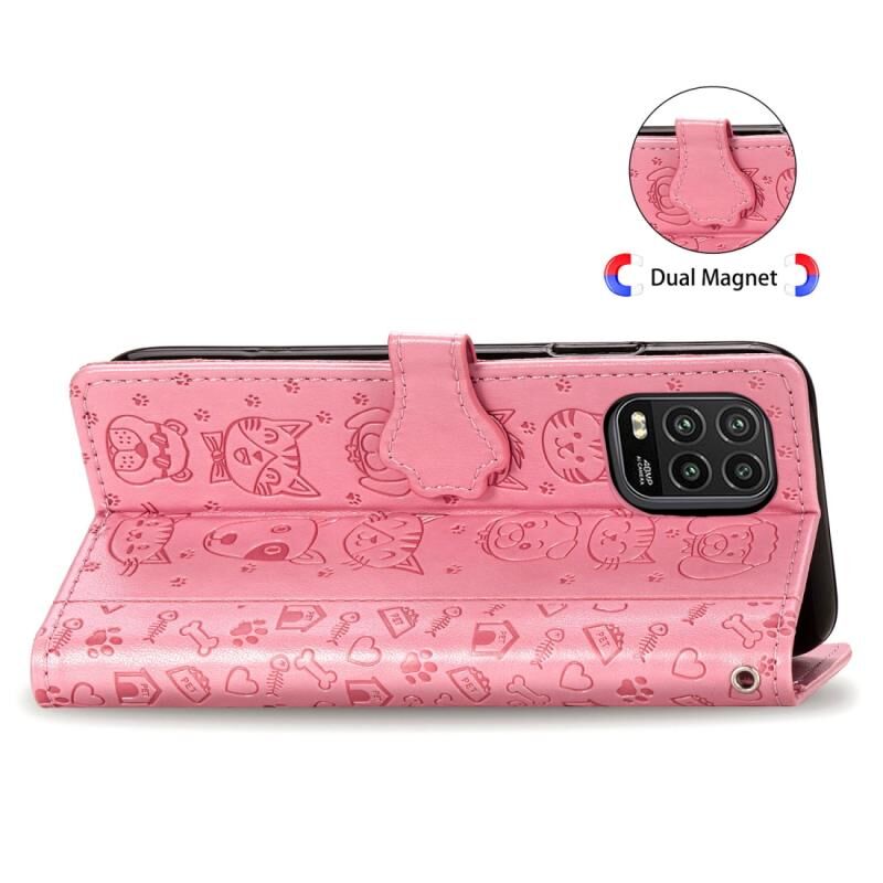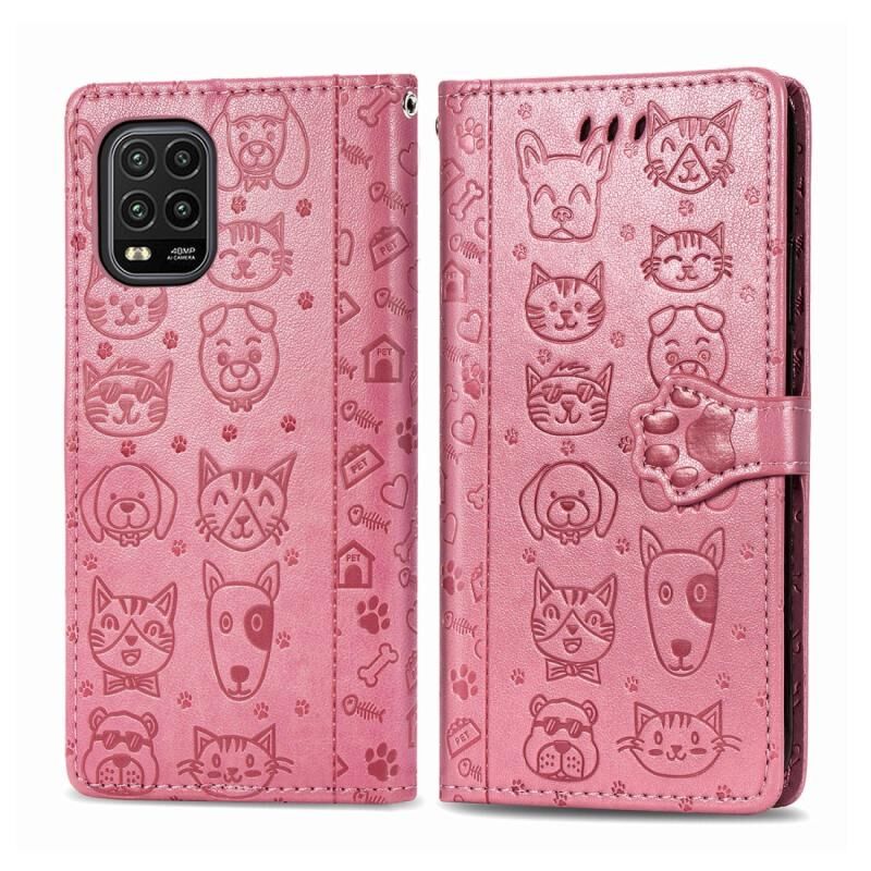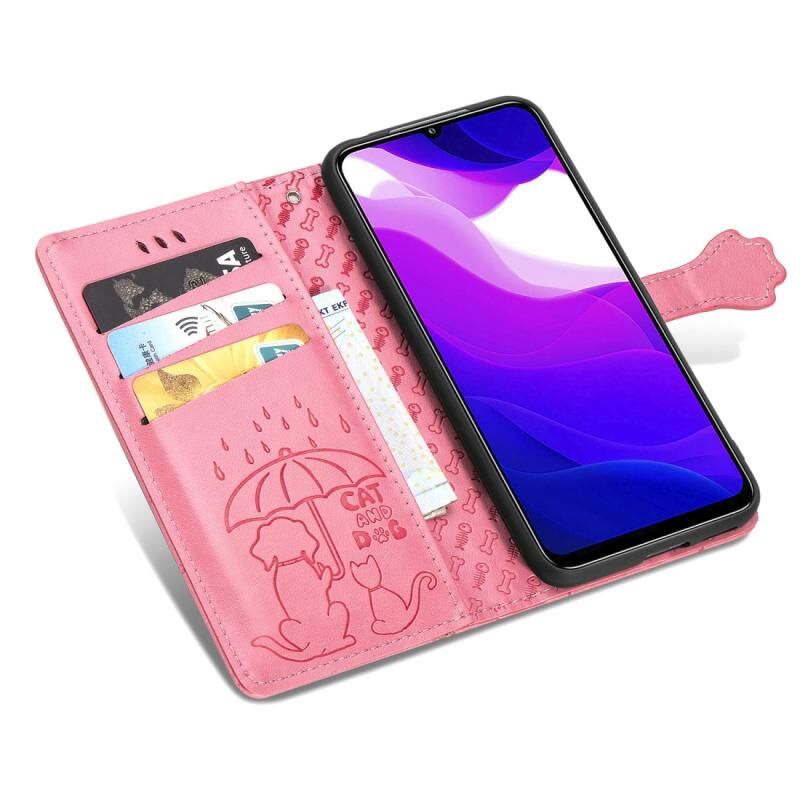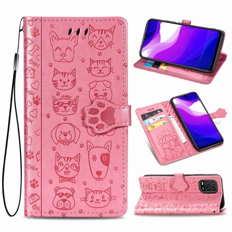 Για Xiaomi Mi 10 Lite 5G Όμορφη Θήκη Δέρματος Οριζόντιας Αναδίπλωσης με ανάγλυφο σχέδιο Γάτας και Σκύλου, με Στήριξη & Θήκες Καρτών & Πορτοφόλι & Κούμπωμα Καρτούν & Λουρί (ρόζ)