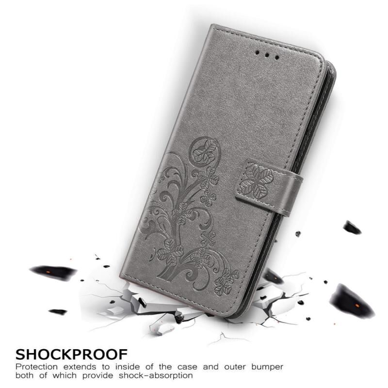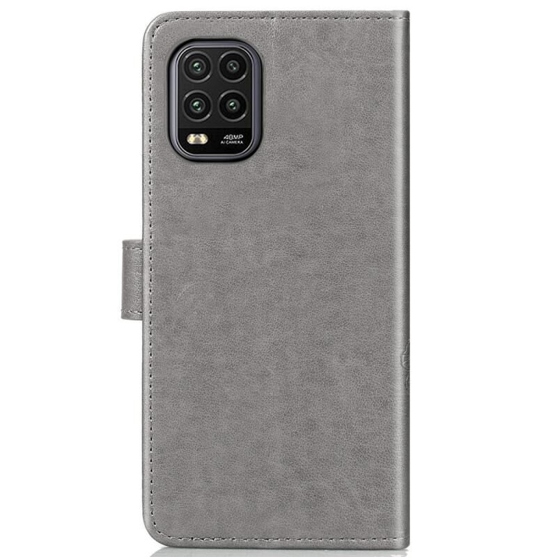 Για Xiaomi Mi 10 Lite 5G Θήκη Δέρματος με Πρεσαρισμένα Λουλούδια Τριφυλλιού, με Στήριξη & Θήκες Καρτών & Πορτοφόλι & Λουρί Χεριού (Γκρι)