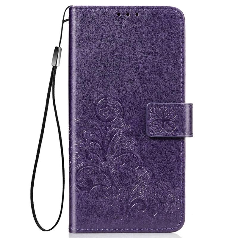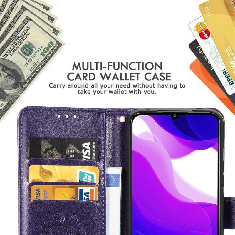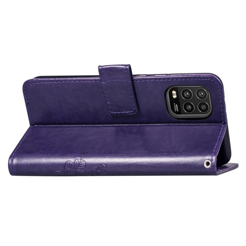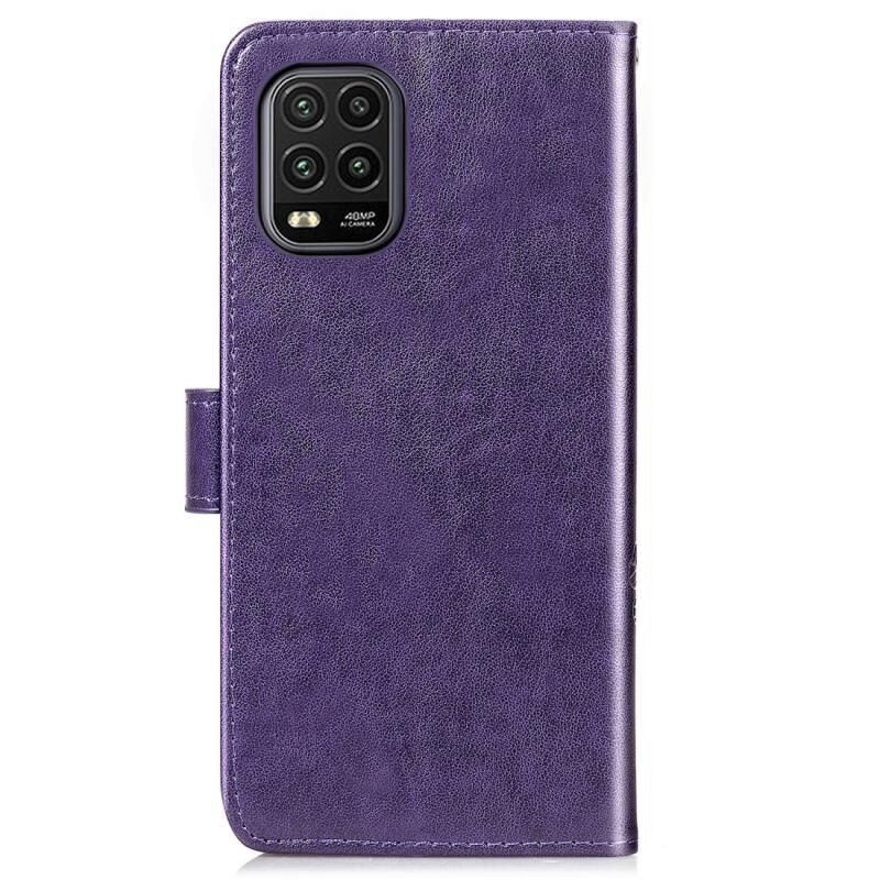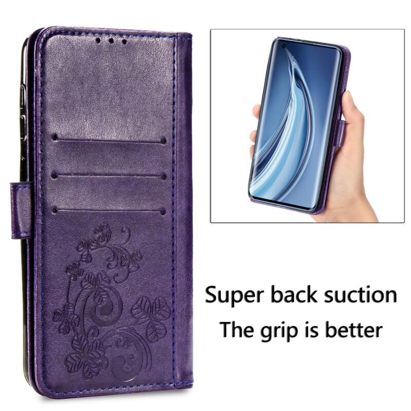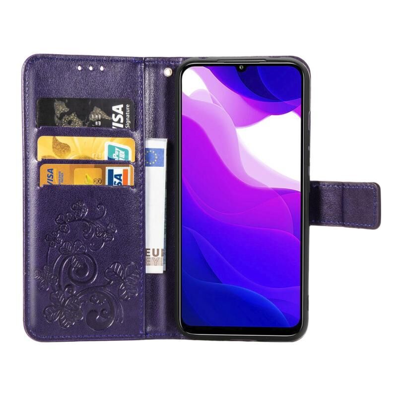 Για Xiaomi Mi 10 Lite 5G Θήκη Δέρματος με Πρεσαρισμένα Λουλούδια Τριφυλλιού, με Στήριξη & Θήκες Καρτών & Πορτοφόλι & Λουρί Χεριού (Μωβ)