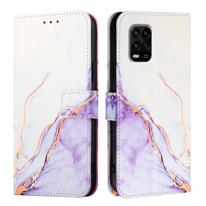 For Xiaomi Mi 10 Lite 5G PT003 Marble Pattern Flip Leather Phone Case(White Purple)