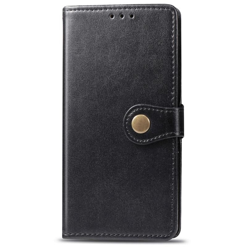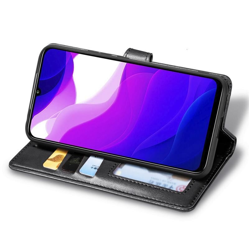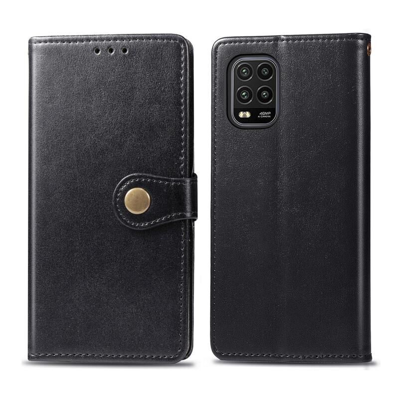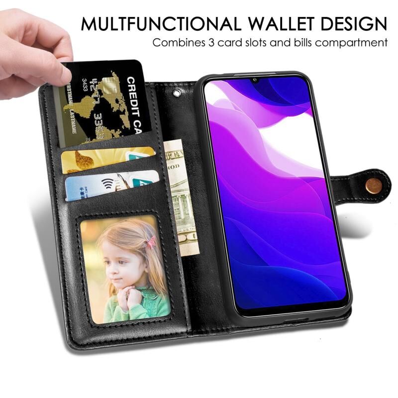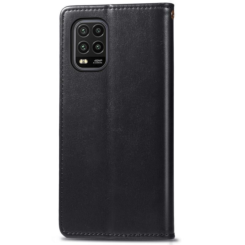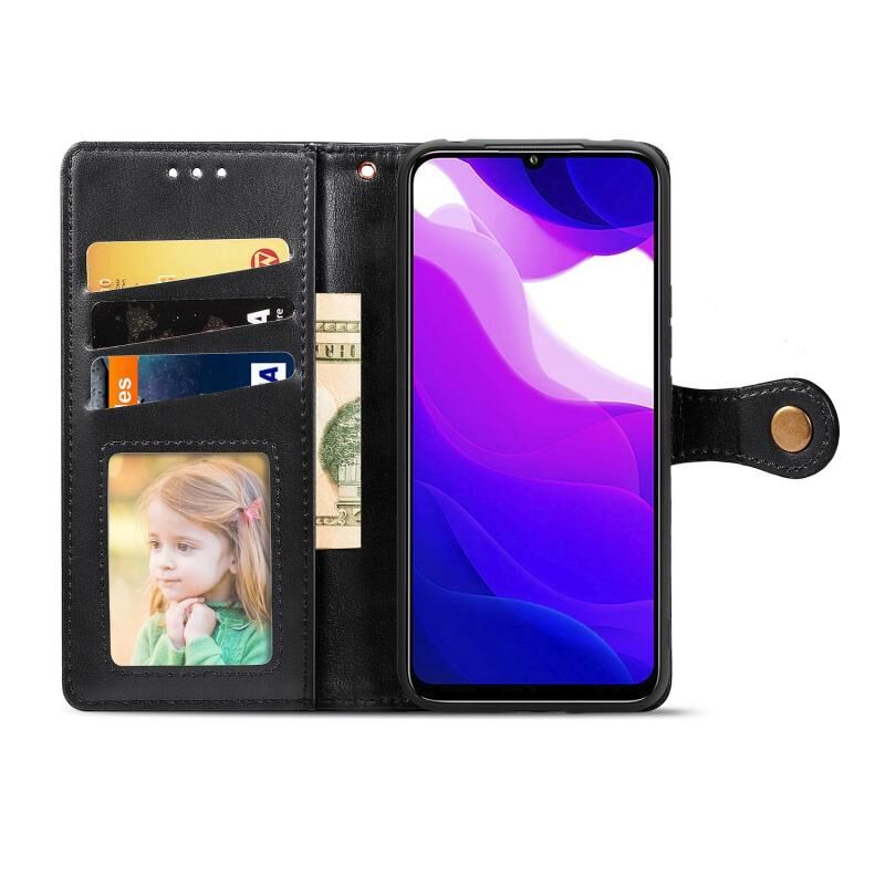 Για Xiaomi Mi 10 Lite 5G Ρετρό αμιγές χρώμα δερμάτινη θήκη τηλεφώνου πόρπη με κορδόνι & πλαίσιο φωτογραφιών & υποδοχή κάρτας & πορτοφόλι & λειτουργία Stand (Μαύρο)