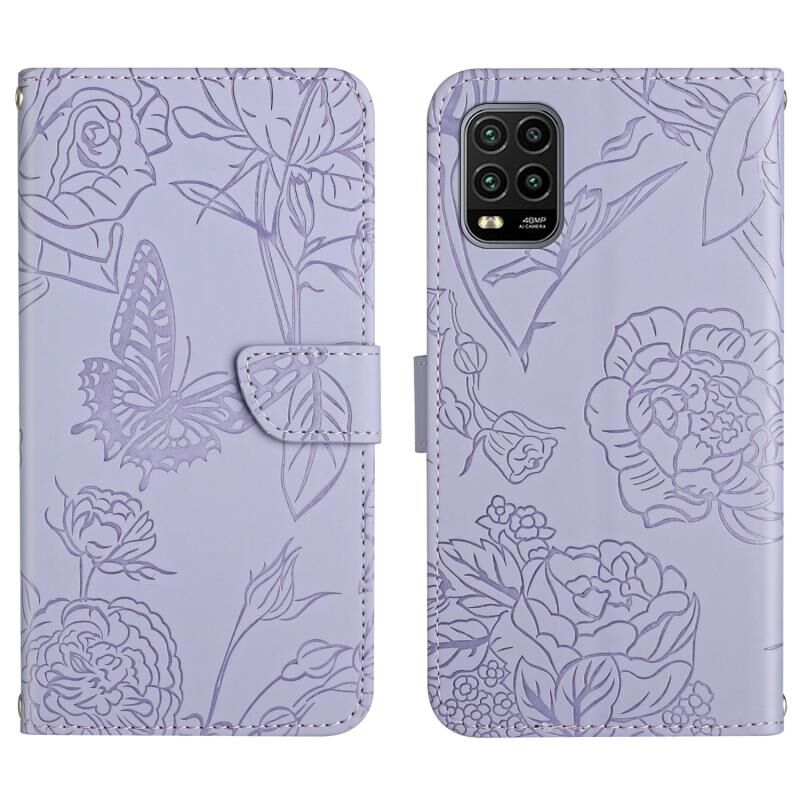 Θήκη τηλεφώνου από δέρμα με ανάγλυφο σχέδιο πεταλούδας και παιωνίας για Xiaomi Mi 10 Lite 5G (Μωβ)