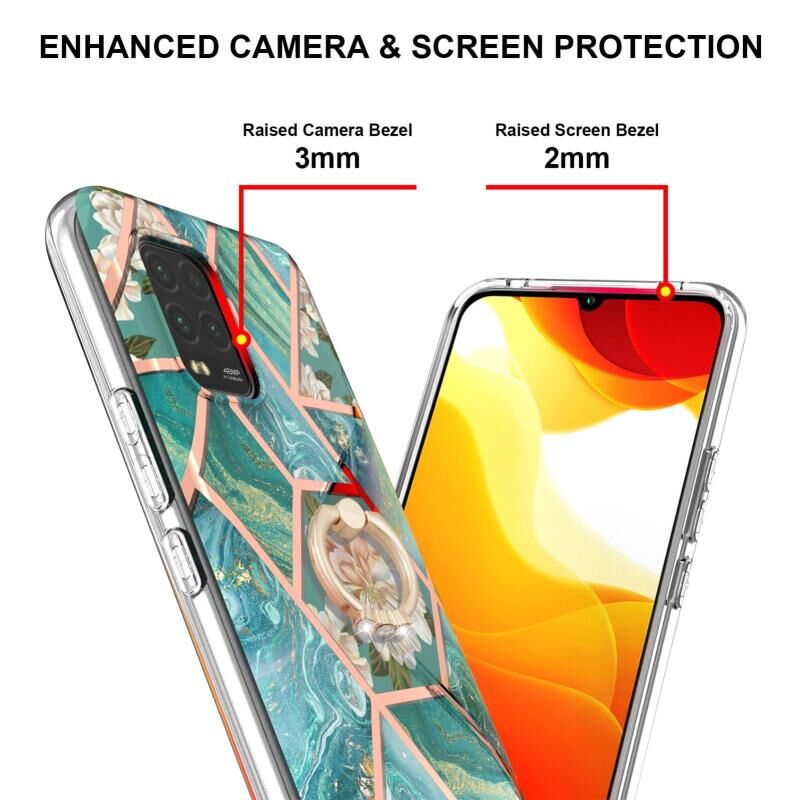 Θήκη για Xiaomi Mi 10 Lite με ηλεκτρολυτική επιμετάλλωση, συνδυασμό μαρμάρου και λουλουδιών, από TPU με αντικραδασμική προστασία και δαχτυλίδι στήριξης με ρητίνες (Μπλε λουλούδι)