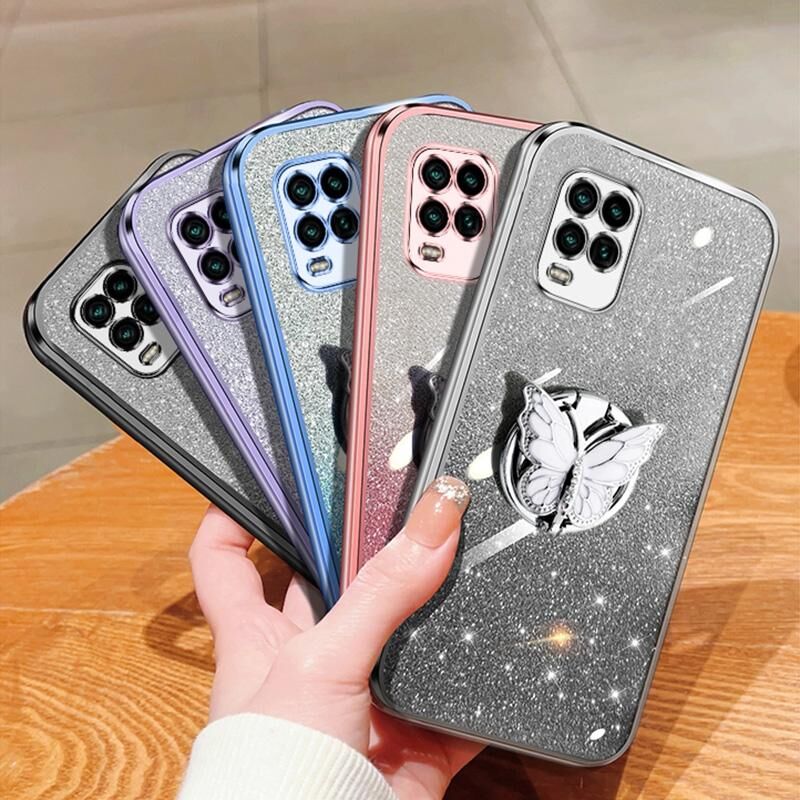 Θήκη κινητού τηλεφώνου Xiaomi Mi 10 Lite επιμεταλλωμένη, με διαβαθμισμένη λάμψη και σχέδιο πεταλούδας (Μαύρο)