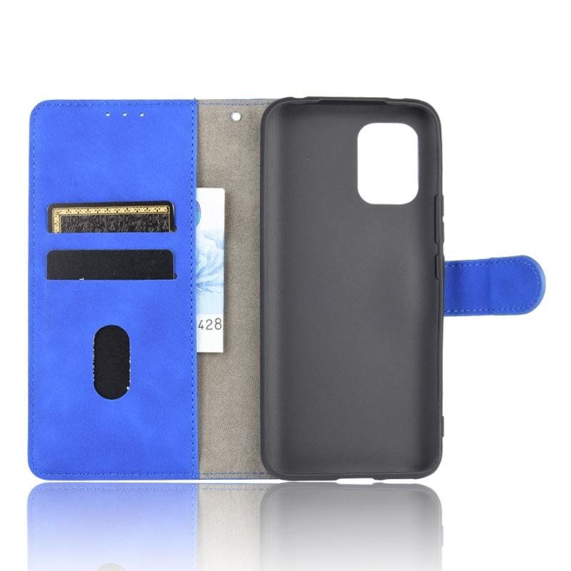 For Xiaomi Mi 10 Lite Solid Color Skin Feel Magnetic Buckle Horizontal Flip Calf Texture PU Leather Case with Holder & Card Slots & Wallet(Blue)