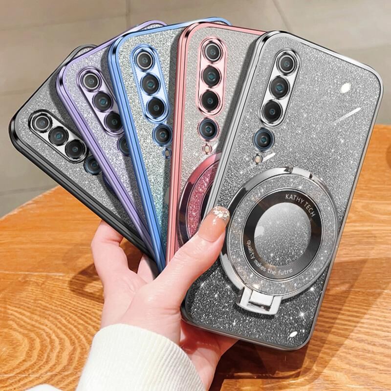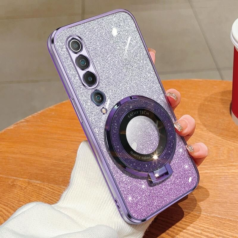 Για Xiaomi Mi 10 Επιμεταλλωμένο διαβαθμισμένη Glitter στρογγυλή κάτοχος TPU υπόθεση τηλεφώνου (Μωβ)