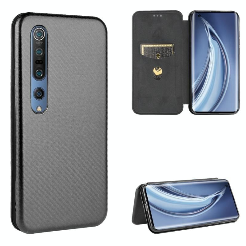 Για Xiaomi Mi 10 Pro 5G Carbon Fiber Texture Horizontal Flip TPU + PC + PU Leather Case με υποδοχή κάρτας (μαύρο)