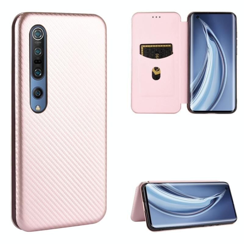 Για Xiaomi Mi 10 Pro 5G Carbon Fiber Texture Horizontal Flip TPU + PC + PU Leather Case με υποδοχή κάρτας (ροζ)
