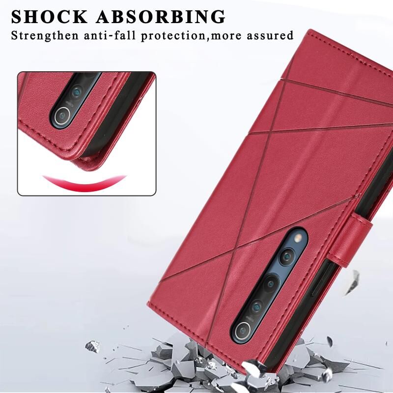 Θήκη τηλεφώνου Xiaomi Mi 10 από γνήσιο δέρμα PU με ανάγλυφη υφή και λεπτομέρειες γραμμής (Μπλε)