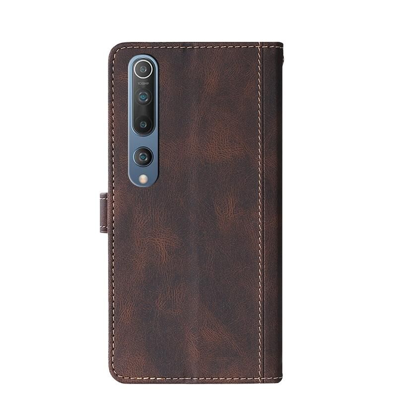 Για Xiaomi Mi 10 Stitching δέρμα αίσθηση μαγνητική πόρπη οριζόντια Flip PU δέρμα υπόθεση με κάτοχο & υποδοχές καρτών & πορτοφόλι (καφέ)