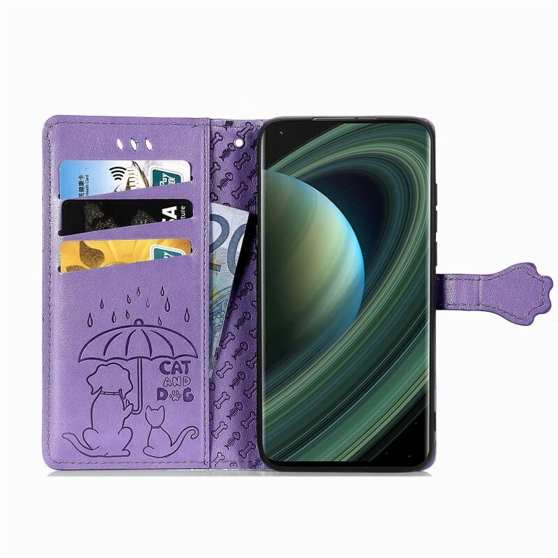 Για Xiaomi Mi 10 Ultra Χαριτωμένη Θήκη Δέρματος Οριζόντιας Αναδίπλωσης με ανάγλυφα σχέδια Γάτας και Σκύλου με Στήριγμα / Θήκη Κάρτας / Πορτοφόλι / Λουρί (Χρυσό Ρόδι)
