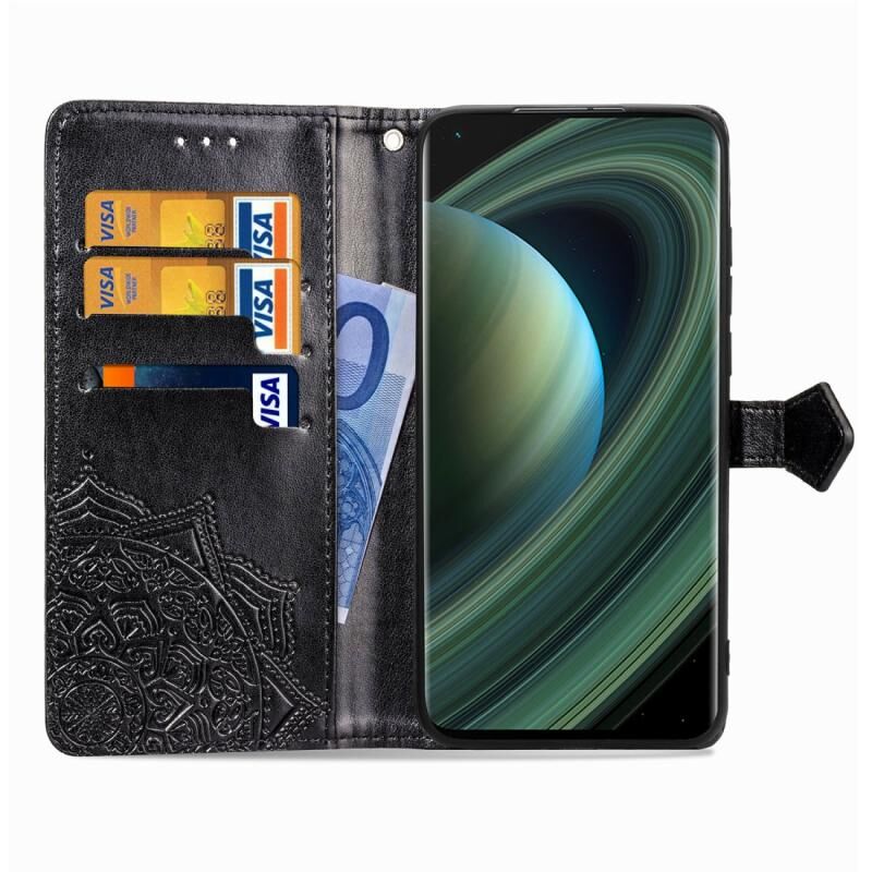 Θήκη δέρματος οριζόντιας αναδίπλωσης για Xiaomi Mi 10 Ultra με ανάγλυφο σχέδιο Mandala, με βάση στήριξης / υποδοχή κάρτας / πορτοφόλι / κορδόνι (Μαύρο)