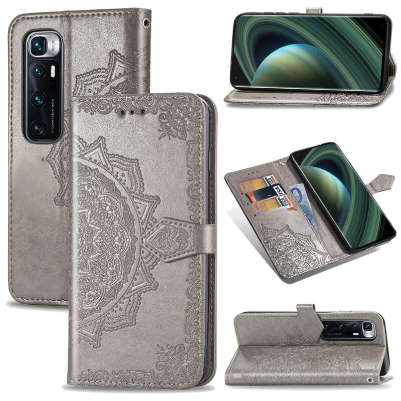 Θήκη δέρματος οριζόντιας αναδίπλωσης για Xiaomi Mi 10 Ultra με ανάγλυφο σχέδιο Mandala, με βάση στήριξης / υποδοχή κάρτας / πορτοφόλι / κορδόνι (Μαύρο)