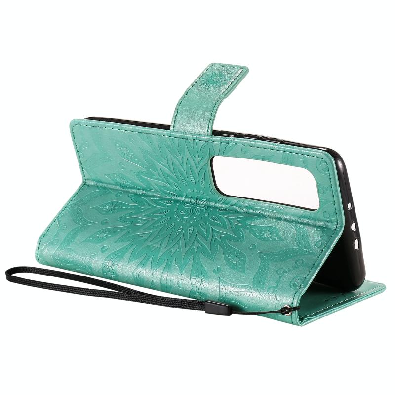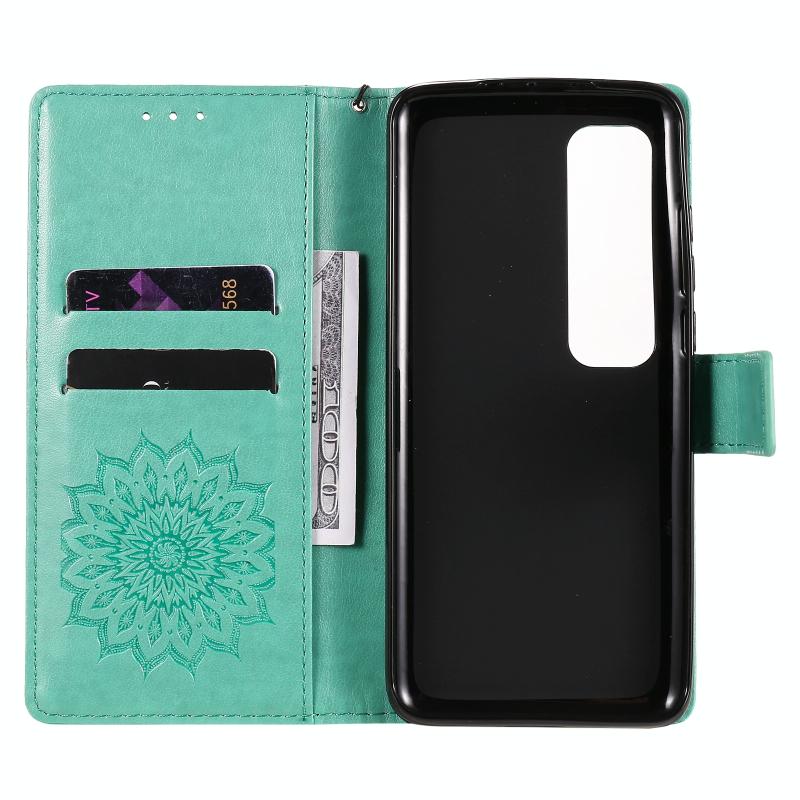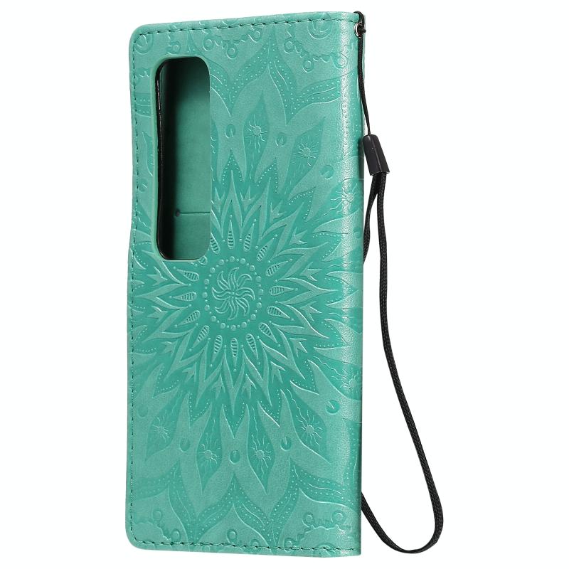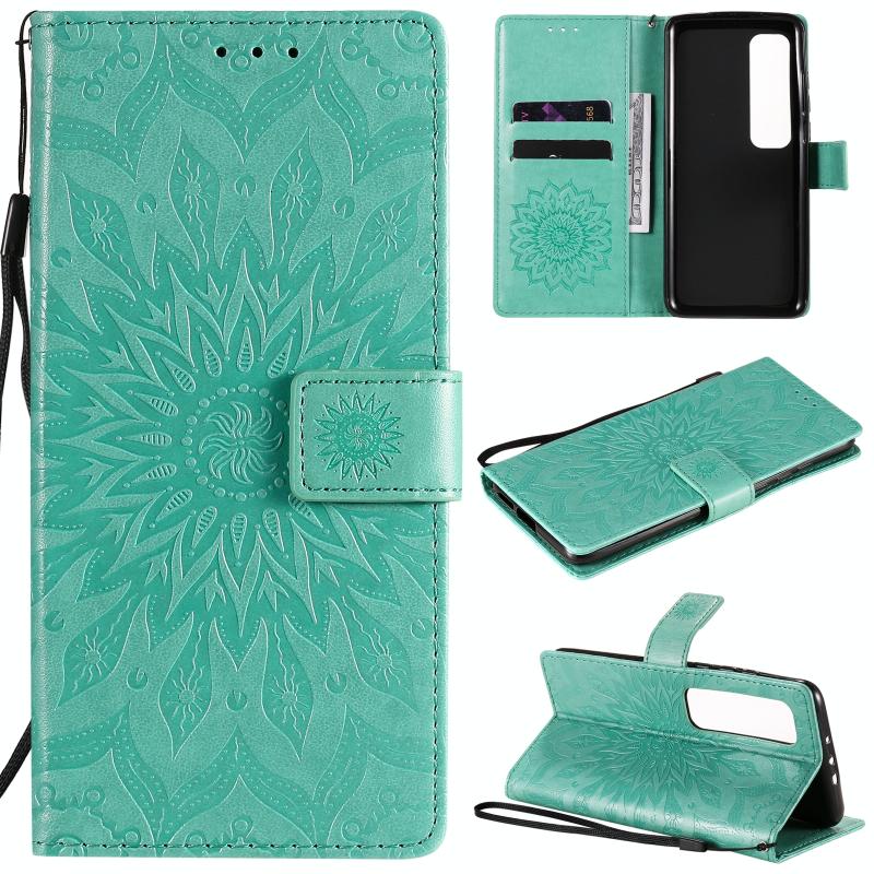 For Xiaomi Mi 10 Ultra Pressed Printing Sunflower Pattern Horizontal Flip PU Leather Case with Holder & Card Slots & Wallet & Lanyard(Green)