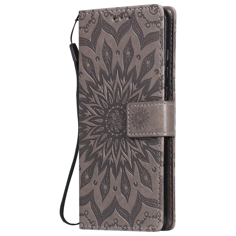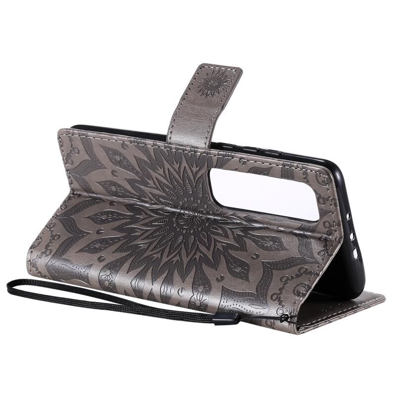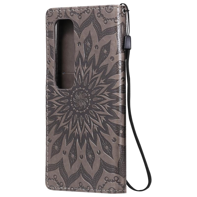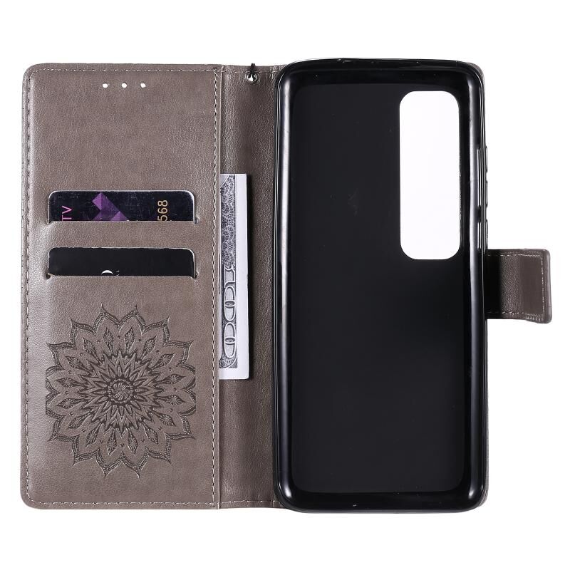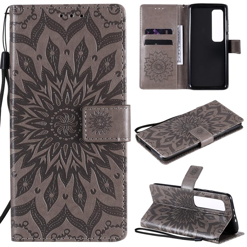 For Xiaomi Mi 10 Ultra Pressed Printing Sunflower Pattern Horizontal Flip PU Leather Case with Holder & Card Slots & Wallet & Lanyard(Grey)