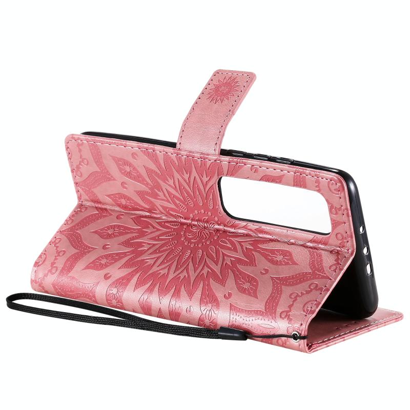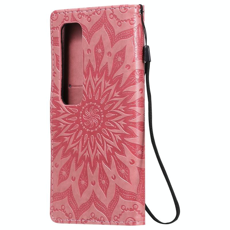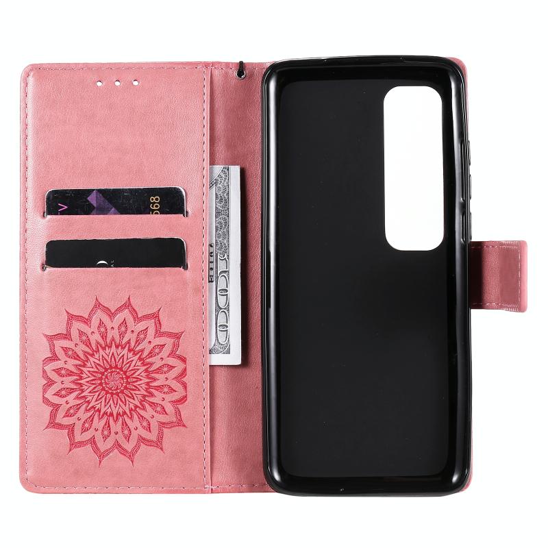 Θήκη για Xiaomi Mi 10 Ultra με εκτύπωση ηλιοτροπίου, οριζόντια αναδίπλωση από δερματίνη PU με βάση στήριξης, θήκες για κάρτες, πορτοφόλι & λουρί (Χρυσό Ρόδινο).