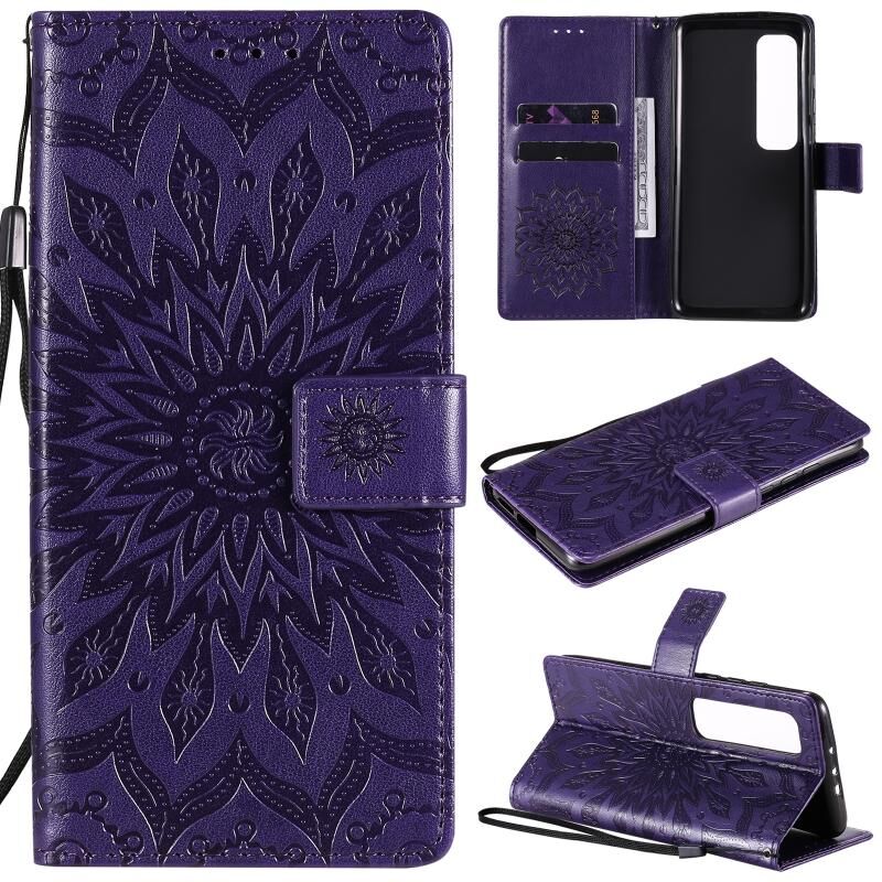 Θήκη για Xiaomi Mi 10 Ultra με εκτύπωση ηλιοτροπίου, οριζόντια αναδίπλωση από δερματίνη PU με βάση στήριξης, θήκες για κάρτες, πορτοφόλι & λουρί (Χρυσό Ρόδινο).