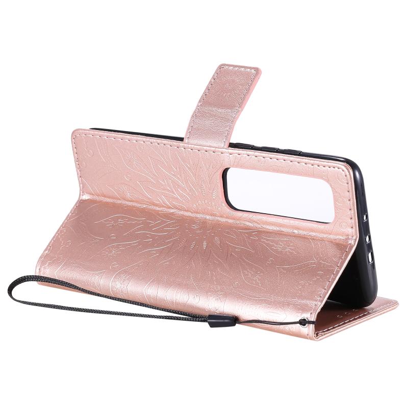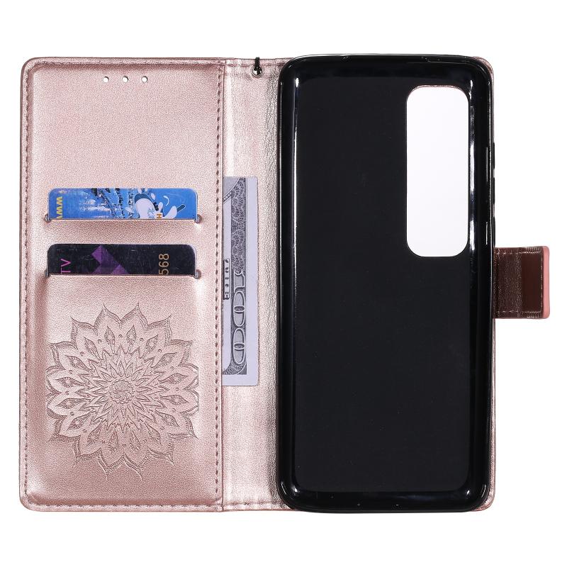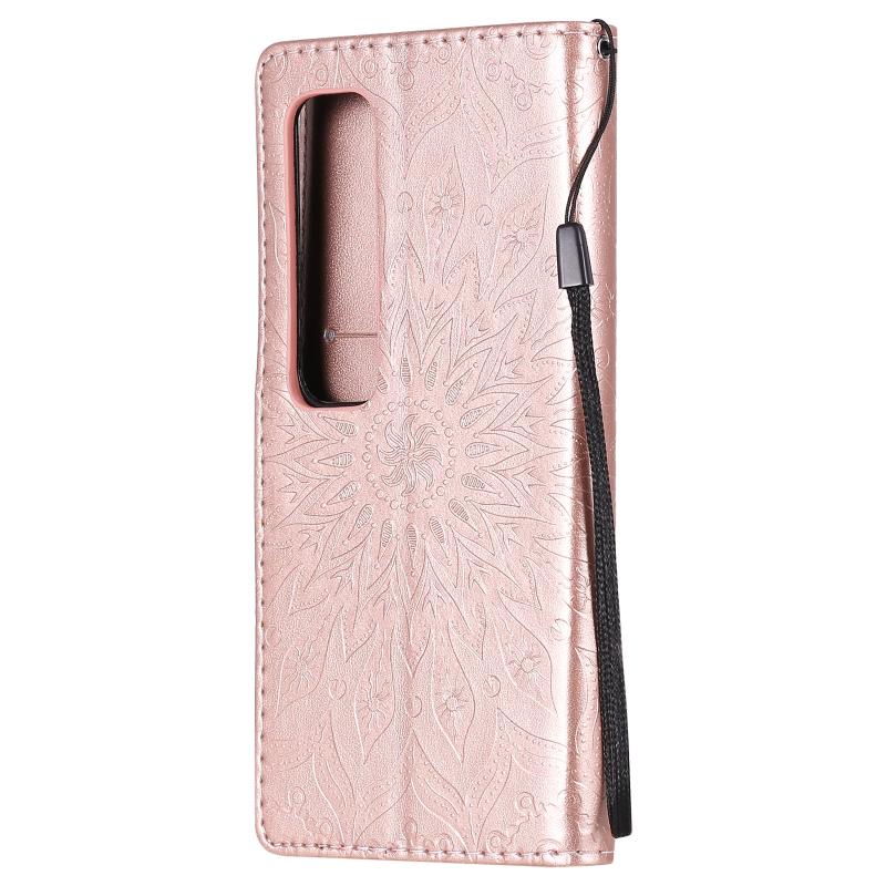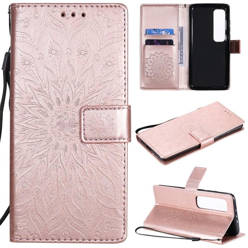 Θήκη για Xiaomi Mi 10 Ultra με εκτύπωση ηλιοτροπίου, οριζόντια αναδίπλωση από δερματίνη PU με βάση στήριξης, θήκες για κάρτες, πορτοφόλι & λουρί (Χρυσό Ρόδινο).