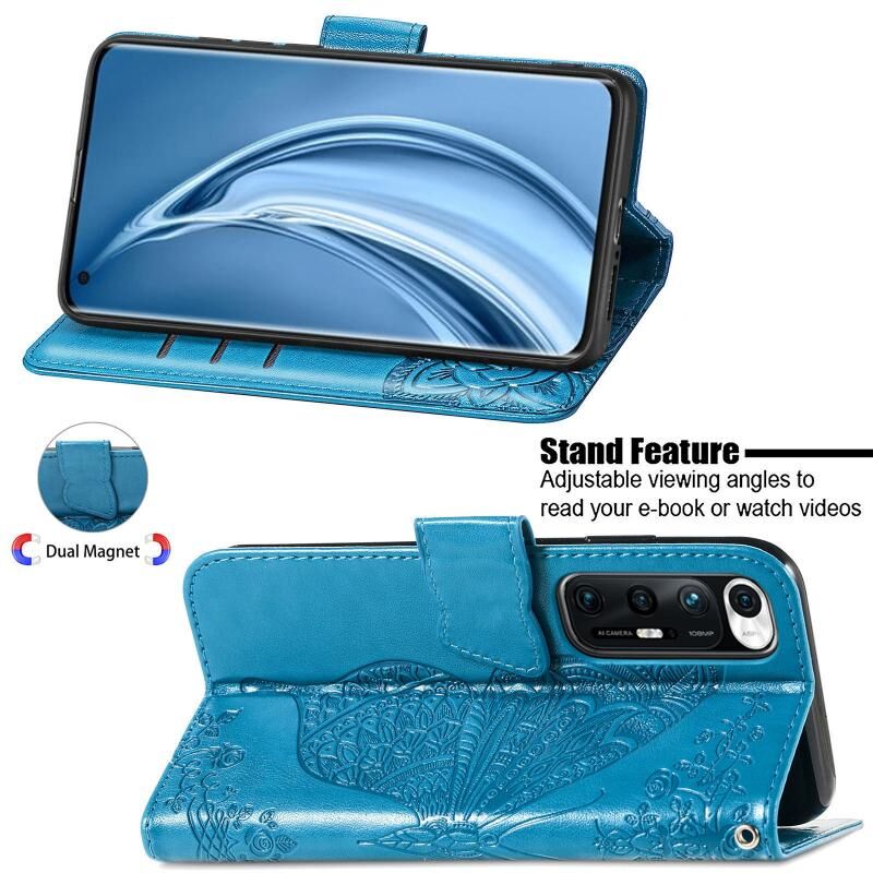 Για Xiaomi Mi 10S Πεταλούδα αγάπη λουλούδια ανάγλυφο οριζόντια Flip δερμάτινη θήκη με κάτοχο & υποδοχές για κάρτες & πορτοφόλι & κορδόνι (μπλε)