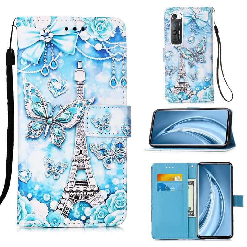 Για Xiaomi Mi 10S Χρωματιστό σχέδιο μοτίβο Plain Weave Οριζόντια Flip δερμάτινη θήκη με κάτοχο & υποδοχή κάρτας & πορτοφόλι & κορδόνι (Πύργος Πεταλούδα)