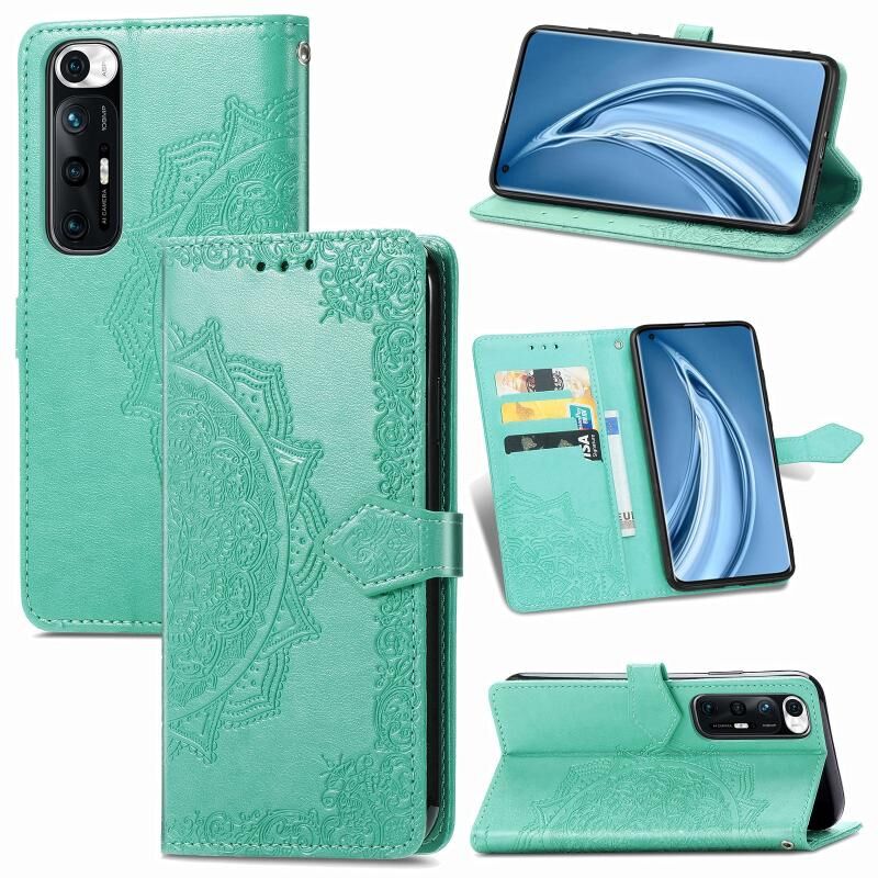 Για Xiaomi Mi 10S Mandala λουλούδι ανάγλυφο οριζόντια Flip δερμάτινη θήκη με βραχίονα / υποδοχή κάρτας / πορτοφόλι / κορδόνι (πράσινο)