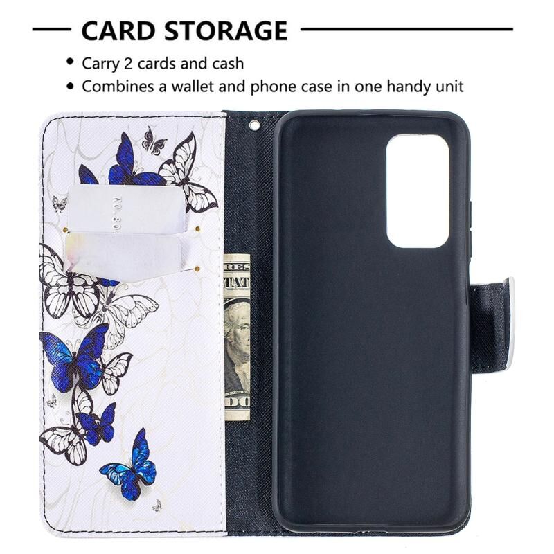 Για Xiaomi Mi 10T / 10 Pro 5G Θήκη Δέρματος Οριζόντιας Αναδίπλωσης με Πολύχρωμο Σχέδιο, Στήριξη, Θήκες Καρτών & Πορτοφόλι (Μπλε Πεταλούδα)