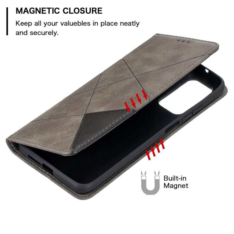 Για Xiaomi Mi 10T / 10 Pro 5G Rhombus Texture Horizontal Flip Magnetic Leather Case with Holder & Card Slots(Grey)