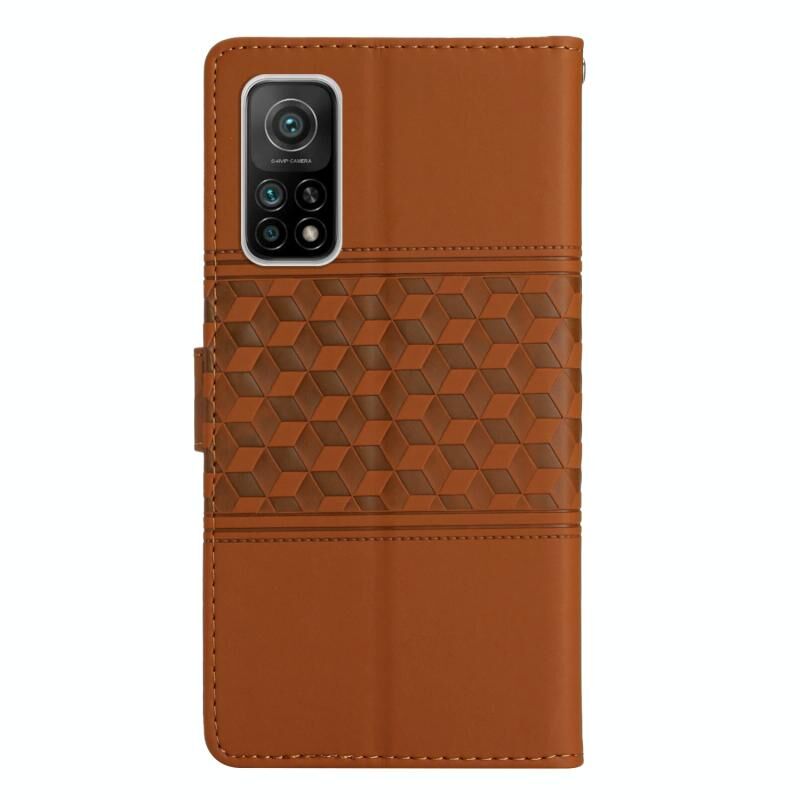 Για Xiaomi Mi 10T / 10T Pro Diamond ανάγλυφο δέρμα αίσθηση δερμάτινη θήκη τηλεφώνου με κορδόνι (Καφέ)