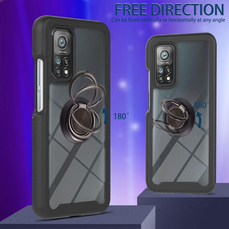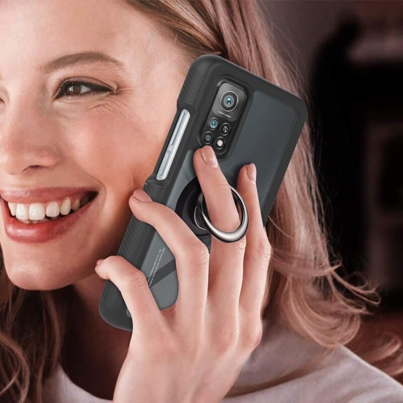 Για Xiaomi Mi 10T / 10T Pro Starry Sky Solid Color Series Shockproof PC + TPU Προστατευτική θήκη με υποδοχή δακτυλίου & μαγνητική λειτουργία (Μαύρο)