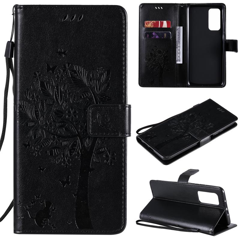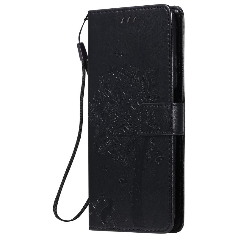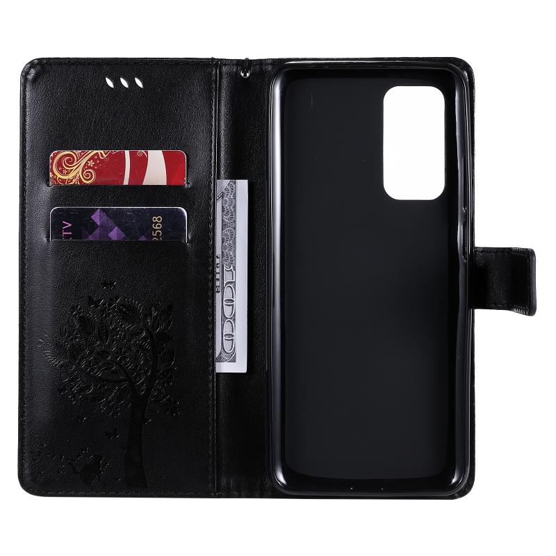 Για Xiaomi Mi 10T / 10T Pro Θήκη Δερμάτινη PU με Οριζόντιο Άνοιγμα, με σχέδιο Δέντρου & Γάτας, με εκτύπωση υπό πίεση, με βάση στήριξης & Θήκες Καρτών & Πορτοφόλι & Λουρί (Χρυσό)