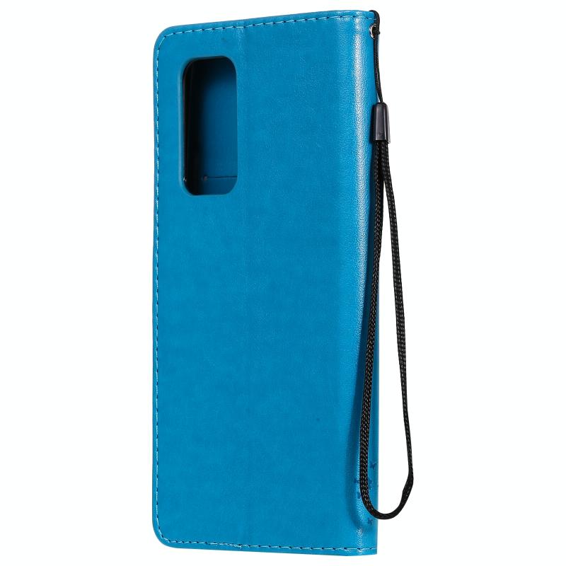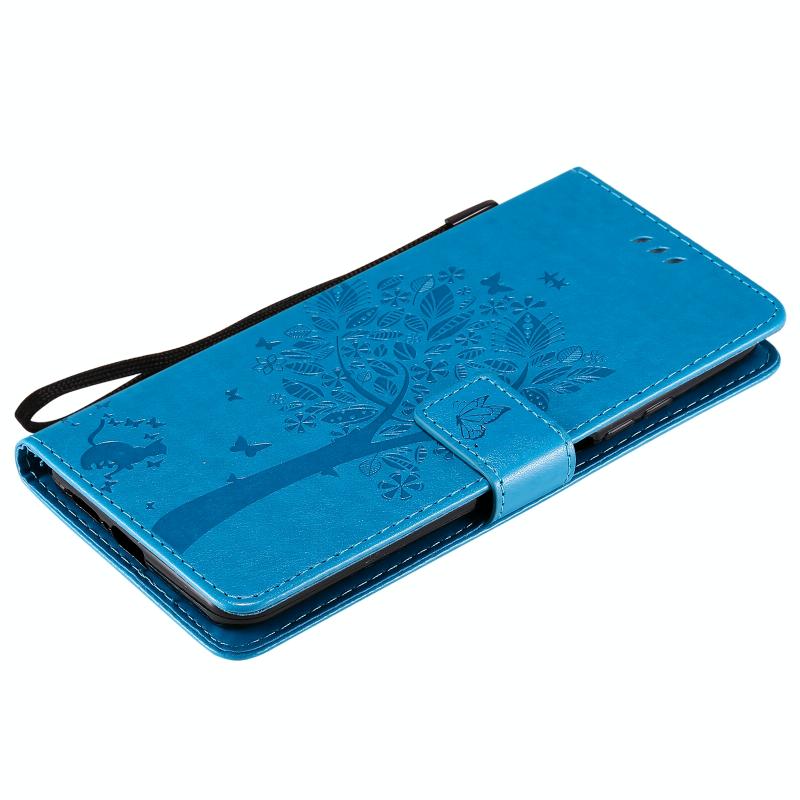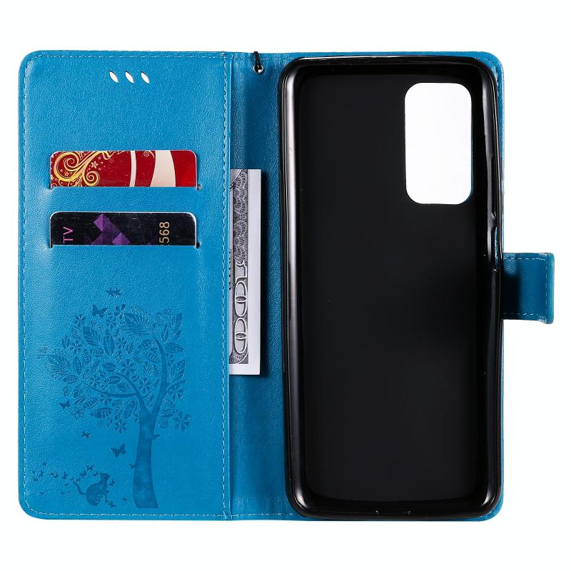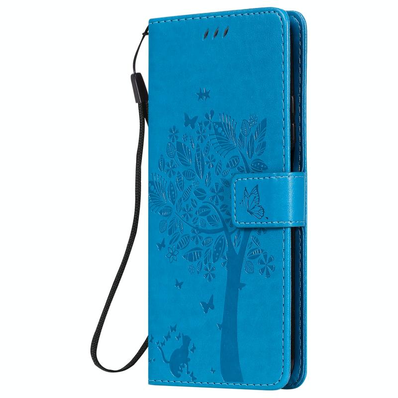 Για Xiaomi Mi 10T / 10T Pro Θήκη Δερμάτινη PU με Οριζόντιο Άνοιγμα, με σχέδιο Δέντρου & Γάτας, με εκτύπωση υπό πίεση, με βάση στήριξης & Θήκες Καρτών & Πορτοφόλι & Λουρί (Μπλε)